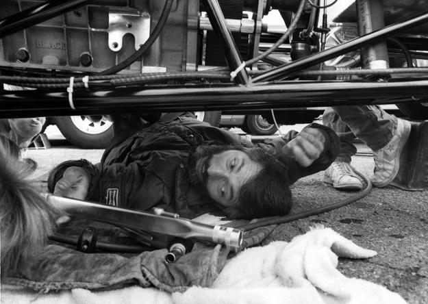 Top Alcohol Funny Car champion Lou Gasparrelli collected his first NHRA win in 20 years of racing when he defeated reigning national champion Brad Anderson in a close final round. Gasparrelli gained momentum at midcourse to record the win at 6.37, 222.22 to Anderson’s 6.44, 215.82. He was photographed here in the pits working on his swift Ford Tempo.
