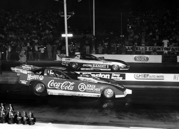 Tim Grose’s Skoal Bandit Trans Am defeated John Force’s Coca-Cola Corvette in the final round of Funny Car. Grose ran a 5.69, 236.84 to Force’s 5.75, 254.95 to score his second NHRA Funny Car national event win. This was the sixth of nine races where Force was the runner-up before he collected his first victory at the 1987 Grandnational in Quebec.
