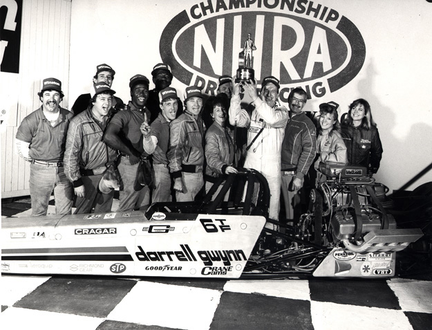 Darrell Gwynn began the 1986 season with his first win in Top Fuel by defeating Connie Kalitta in the final. Gwynn posted his fifth straight 5.4-second run, a 5.46, 257.87, to beat Kalitta’s 5.72, 209.79. His most important win of the event had to be his semifinal defeat of nemesis Don Garlits. Gwynn shot to a winning 5.45 while Garlits had the misfortune of breaking the throttle linkage, slowing to a 13.45, 60.08.