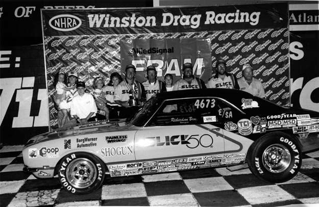 Scotty Richardson celebrated in the winner’s circle for the second consecutive weekend by following his divisional win in Rockingham, N.C., with a Southern Nationals title in Stock. He drove his E/SA ’68 Camaro past former U.S. Nationals champ Dennis Oliver and his M/S ’65 Chevy Impala in the final.