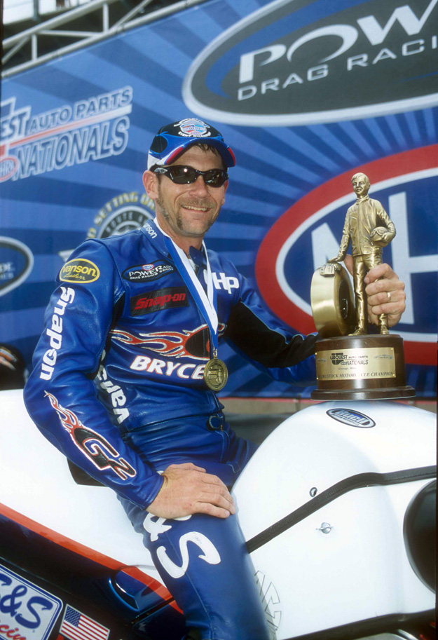Chip Ellis scored his second win in nine starts when he beat Geno Scali in the final round of Pro Stock Motorcycle, 7.20 to 7.34. Ellis dedicated his victory to crew chief Ken Johnson, who was hospitalized with a severely broken leg.