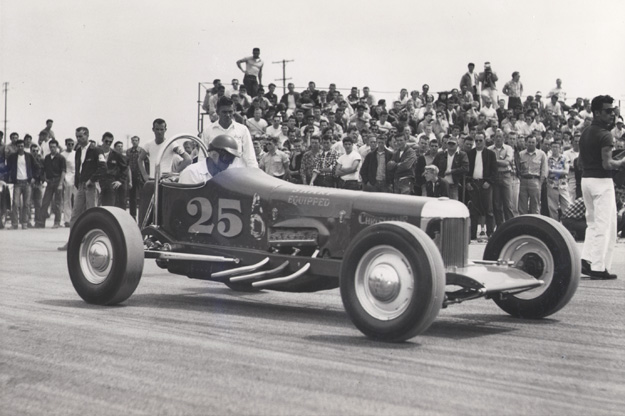 Chrisman and his family moved from Arkansas to Compton, Calif., during World War II and owned an automobile-repair shop, Chrisman & Sons Garage, where Chrisman quickly learned about cars and developed an interest in racing. Chrisman and brother Lloyd began racing the family’s ’36 Ford four-door sedan in the mid-1940s before buying their soon-to-be-famous No. 25 car in 1949. (Below) Chrisman recorded the first quarter-mile run at more than 140 mph at Santa Ana Drag Strip in February 1953.
