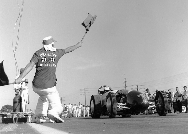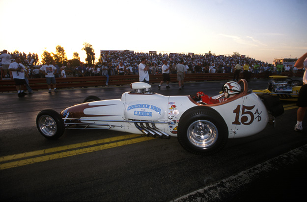 In 1958, the slingshot-style dragster was beginning to make its mark. The Chrismans, along with Frank Cannon, built their famed Hustler I dragster, which immediately won the Best Engineered Car award at the 1958 Nationals in Oklahoma City (pictured). The car, powered by a blown 392-cid Chrysler engine stroked out to 454 inches, recorded the sport's first 180-mph run with a 181.81 at Riverside Raceway and won the Smokers Meet in Bakersfield in 1959.