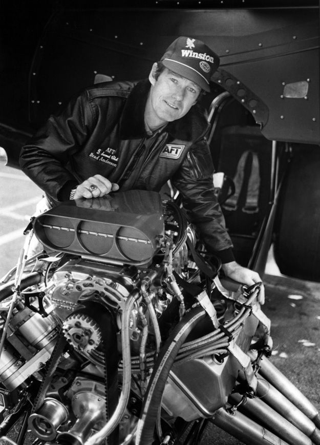 In addition to the wins in his impressive driving career, Anderson was responsible for dozens of event victories and championships in Top Alcohol Dragster, Top Alcohol Funny Car, Funny Car, and Top Fuel as a provider of performance parts, especially his cylinder heads. Brad Anderson Enterprises, in Ontario, Calif., continues to be one of the leading manufacturers of racing engine components.