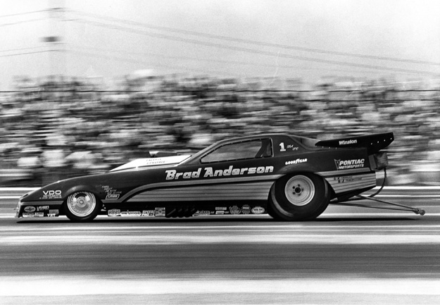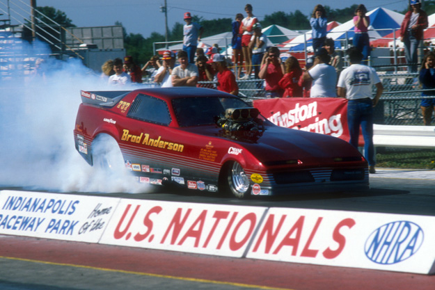 National Dragster photo archives, we look into the file of one of the most accomplished Top Alcohol Funny Car drivers, Brad Anderson. Ranked No. 33 on the NHRA Top 50 Drivers list in 2001, Anderson experienced much success in his driving career and with his cylinder-head business. Here are some photos from Anderson’s memorable drag racing career.
