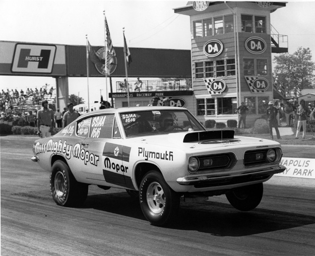 Lilly’s racing career began in 1961, when she started driving an independently campaigned D/Sports ’61 Corvette entry while living in Littleton, Colo. After winning class honors at the 1965 Winternationals, she began to attract the attention of Chrysler factory racing officials and soon became a member of the Mopar factory team, driving a ’67 Plymouth SS/B entry (pictured) in 1967.
