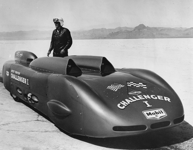 Thompson achieved land-speed-record history in 1960 with a one-way top speed of 406.60 mph with his four-engine Challenger 1 at the Bonneville Salt Flats. His Challenger 1 is on display at the Wally Parks NHRA Motorsports Museum presented by the Automobile Club of Southern California.