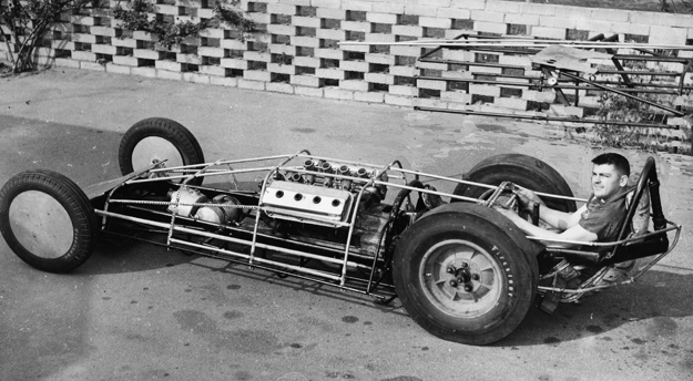 Thompson is credited with designing and building the first slingshot dragster in 1954, which positioned the driver behind the rear axle to improve traction.