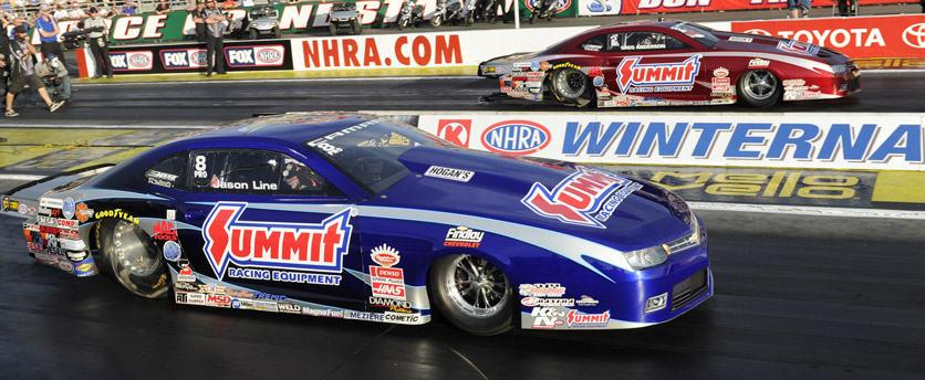 The KB Racing trio of Greg Anderson, Jason Line, and Bo Butner dominated the first race with the new rules package that features electronic fuel injection, no hood scoops, and shorter wheelie bars. Though Anderson joked in November that he didn’t even own a laptop, which is now necessary to tune the fuel system, it shouldn’t come as a huge surprise that this group jumped to an early lead in the category that is now Dr. Atkins-approved.