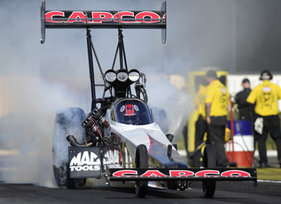 Hogan has now won the season opener in both of the nitro categories after tuning the late Bruce Sarver to a Funny Car win in 2001 and Steve Torrence to the Top Fuel victory this season. The Capco Contractors dragster never stumbled on its way to victory.