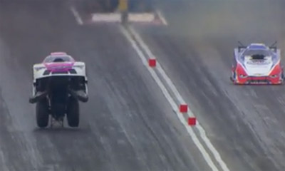 Calling Pedregon's round-one win over Robert Hight one of the most amazing moments in NHRA history isn't much of an exaggeration for anyone who witnessed it either live or on TV. Pedregon's Snap-on Toyota launched into a midtrack wheelstand and didn't set the front end down until well after the finish line. Pedregon wasn't hurt in the incident, but his chassis was too damaged to return for his second-round race against Ron Capps.