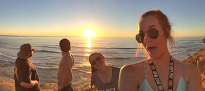 In other news, my boyfriend, Isaac, and I celebrated our third Valentine’s Day on Sunday in Pomona! Nothing says “I love you” like the smell of nitro and clutch dust. We also got to meet up with our friends Adam and Jenna on Saturday and Sunday of Pomona, and that was one of the highlights of this trip for me. Adam worked at Kalitta Motorsports from 2013-2015 and left at the end of last year to move back to the west coast so that he and his girlfriend, Jenna, could be closer to their families. We became really close with Adam and Jenna while they lived here in Michigan, and we’ve missed them a lot since they left, so it was great to catch up and spend some time together. I got to spend a day with them in San Diego before I headed back to Michigan, and we had a blast! We ate some awesome seafood by the beach, did some crazy rock climbing adventures to get to a super cool spot on the beach, and ate some delicious Mexican food for dinner. I was only there for about 24 hours, and we definitely made the most of the time we had!
