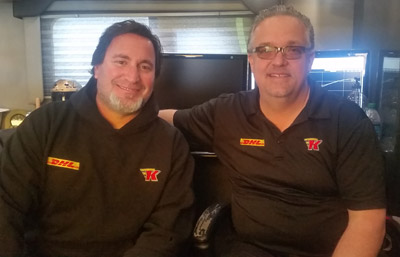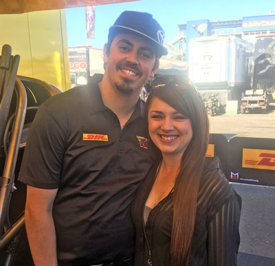 Something else we did in Pomona that was pretty fun was record the first episode of Late Night Lounge with Buck and JaaanO! Our team manager, Rachel DeLago, came up with the great idea to record Nicky Boninfante and Jon Oberhofer in their natural habitat: the DHL crew chief lounge. Those two sit up there and talk about everything, and they’re usually pretty funny! It seems like their lounge is the most popular hang-out spot at the track because people are constantly going in and out of that trailer. You’d be surprised how many people they can fit into their little 12-foot x 12-foot lounge. You can find the link to the pilot episode of Late Night Lounge on our Facebook and Twitter accounts, but be warned! There is some adult language and crude humor. But it’s pretty funny, so I recommend giving it a watch!