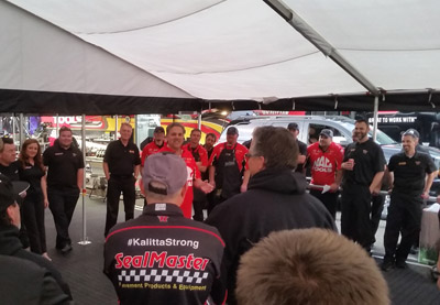 Team Kalitta had a pretty successful showing at the Winternationals this year! Alexis qualified fourth after running a career best 3.942 ET and made it to the quarter-finals where Del and the DHL team got the win light against the Patron team. J.R.’s SealMaster team made it to the semifinals before being defeated by Doug’s Mac Tools team, and we ended the day with Doug and Del in the final round. We may not have gotten the Wally, but the day really couldn’t have gone much better. My dad got the whole team together after everything was said and done and talked about how proud he was of everyone and how this was a great starting point for us this season. I would have classified this as an “awwww” moment, and it went with the theme of the day since it was Valentine’s Day.
