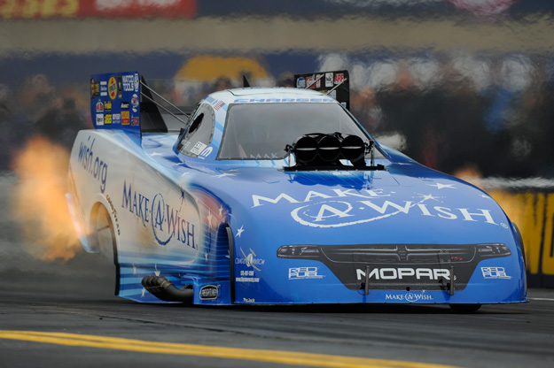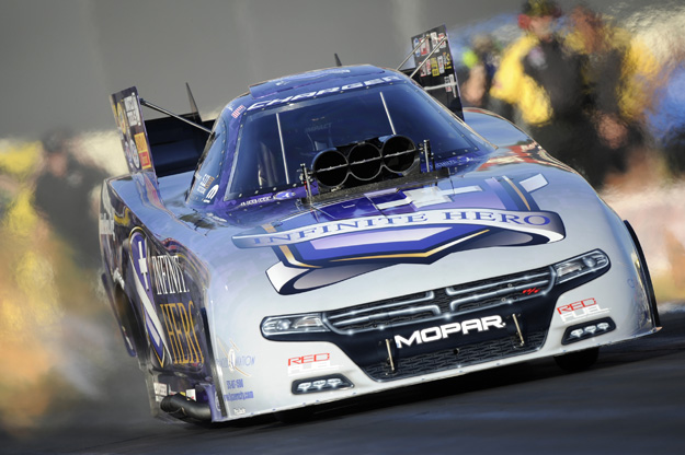 Winners: The entire Don Schumacher Racing Funny Car team, with drivers Ron Capps, Tommy Johnson Jr. (pictured), Matt Hagan, and Jack Beckman, was the biggest winner in Reading, occupying all four semifinal spots. Of those four, Johnson was the biggest winner after he won the race and gained a round on Capps, who held steady with a much-needed runner-up finish. Hagan, who celebrated the birth of his third child Saturday night, improved from sixth to fourth thanks to his semifinal showing.