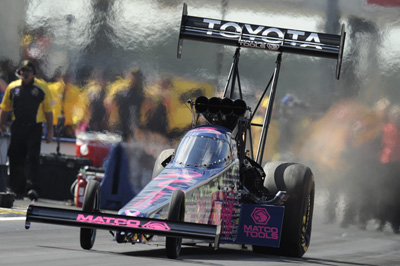 Barring an amazing and unforeseen turn of events, this is the round that decided the Top Fuel championship. Kalitta desperately needed a win to stay in the points battle against Brown, but the Matco team was too strong. Brown won a thrilling 3.73 to 3.76 battle and extended his lead with an eventual final-round win against Steve Torrence.