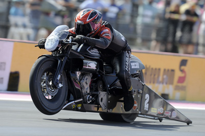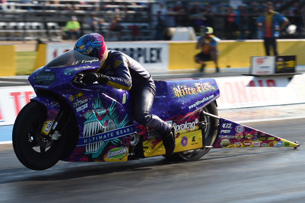 Tonglet is consistently one of the best riders in the Pro Stock Motorcycle class, and he proved it again with a narrow win over points leader Hines. Tonglet’s Nitro Fish Suzuki left first, .008 to .021, and held on to win by just .0002-second.