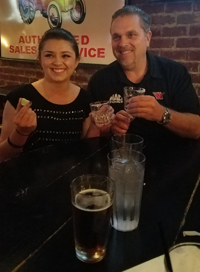 After Houston, we headed to Atlanta. I couldn’t wait for this race because it marked my 21st birthday! Friday’s qualifying sessions were pretty decent, with all of our Toyota Racing cars making it solidly down the track at least once. Doug even ran a 3.731 e.t. to set a new track record and earn the provisional No. 1 starting spot (which he maintained) and three bonus points. After Q2 on Friday, I could hardly contain my excitement. At midnight, I would finally be 21! I had the perfect plan for the night: head to a bar and do a shot of Patron Silver at midnight with my Pops. Everything went according to plan, and I got to bring in my birthday in a simply perfect way. The next day we wrapped up qualifying. Doug remained No. 1 qualifier and earned another green hat, J.R. qualified third, Alexis was fourth, and Del was 10th. After getting all of my work done for the day, I headed back to the pit where our hospitality area was decorated with 21st birthday décor in preparation for a party. Our team manager, Rachel DeLago, even managed to get Jason (one of the fabulous track announcers/entertainers) to DJ for the party! It was an awesome night surrounded by so many amazing people. I couldn’t believe how many people came over to celebrate with me, and I’m still blown away by everyone who came by. Even Connie stayed around for a little bit, which was possibly the highlight of the night for me. I wouldn’t have wanted to celebrate in any other way than with my racing family. To everyone that helped make my birthday one for the books, thank you so much!