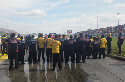 zMAX Dragway is sometimes described as “the Bellagio of dragstrips.” That isn’t an understatement. The facility is absolutely beautiful; from the starting line tower, to the pits, to the grandstands, it’s a top notch place. Add to that the fact that zMAX is the only dragstrip in the world (to my knowledge) that has four lanes, and you’ve got a one-of-a-kind facility. The 4-Wide experience is definitely different from our typical 2-wide format, but I think it’s an experience that any race fan should have at least once. I mean, it’s 40,000 horsepower going down the track at once! It can be a bit confusing to follow at times if you’re still getting used to the 4-Wide format (like myself), but if you’re just looking for pure nitro madness, the 4-Wide Nationals would be the place to go. The racing side of things wasn’t much in our favor in Charlotte this year, with Alexis and Del both making first-round exits and J.R. going out in the second round. Doug made it to the final, but came up short as Brittany Force earned her second Top Fuel victory of 2016. Even though our race day didn’t turn out as we had hoped, it was still a pretty good weekend! Alexis qualified No. 1 after running her career-quickest e.t. (at the time) with a 3.934, Del qualified fifth with a 3.963, J.R. was the No. 2 qualifier in Top Fuel with a 3.743, and Doug qualified fourth with a 3.752. Strong efforts by all of our cars, but it just wasn’t our weekend to win.