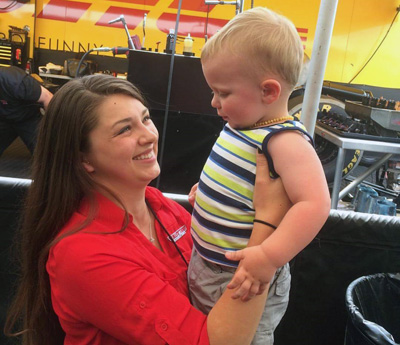 Alexis debuted her Bounty Hunter FC001 chassis with an impressive 3.928 in its first trip down the track, which was fantastic! Our entire chassis shop crew was pretty stoked to hear about the successful pass by their first in-house built Funny Car. Aside from that excitement, the racing aspect of the New England Nationals was pretty low for us, with a rainout on Sunday and some early exits on Monday when we finally ran eliminations. The weekend wasn’t a total wash for me though; I got to spend some time with my boyfriend Isaac’s family! His mom, dad, sister, brother-in-law, nephew, brother, and grandmother all drove down from Maine, and some various other relatives came from some other New England states as well. I was so excited to see Isaac’s nephew, Colby, because I haven’t seen him since Epping last year! He has grown so much and is just the cutest little boy I’ve ever seen!