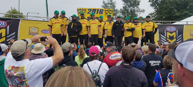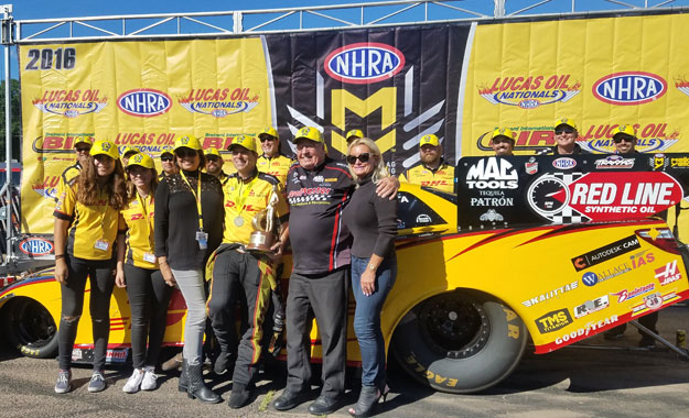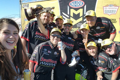 Since my last blog, we’ve been to six races that have gone pretty well for us – five of these six races had a Team Kalitta car in the final round! Sonoma was the first of these six events, and J.R. picked up his first win of 2016 at the Toyota Sonoma Nationals there in wine country. Since J.R. joined our team, his three wins have all come during the Western Swing; Denver in 2014, Seattle in 2015, and now Sonoma in 2016. Winning in Sonoma was pretty special for J.R. since 10 years ago, he won there with Eric Medlen. It was really cool to see Eric’s mom, Mimi, join J.R. in the winner’s circle for a few photos. I’m glad that she got to be there, and I’m glad that J.R. got to win for his buddy
