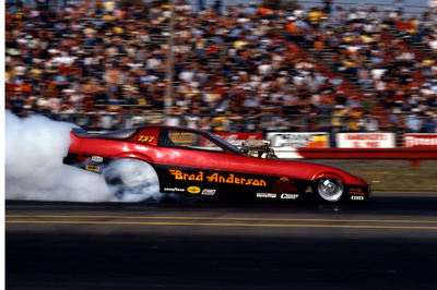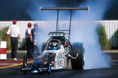 While the racers in the Top Alcohol Funny Car class essentially conformed to one type of combination, their dragster counterparts whittled down into two major distinctions: blown and A/Fuel. Rules changes to ensure parity have been taking place since some A/Fuelers began making runs that were seemingly out of reach for a blown combination in the early ‘90s. There was a great deal of debate among racers regarding what determines a level playing field, because the A/Fuelers had more performance potential but were inconsistent and not winning races at the time. Entries such as the Adams & Enriquez A/Fueler at the 1992 NHRA Finals and Tom Topping’s dragster began resetting the national records significantly during prime national event conditions, and NHRA compensated by regulating the minimum weight and gear ratios of the A/Fuelers. This process continued as drivers such as Keith Stark and Chess Bushey continued to raise the performance bar on injected nitro, and many blown stalwarts began switching over to the A/Fuel combination.