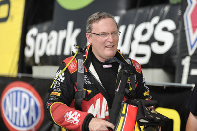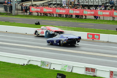 The weirdness trickled down to the Top Alcohol Funny Car ranks, where Steve Gasparrelli, who scored his first win in almost a decade, had no opponent in the final round. On a single in the other semifinal matchup, Brian Hough’s car lost fire on the burnout due to a crank trigger malfunction and was unable to stage under power. It was reminiscent of Dennis Taylor’s win in the same category at the 2004 season opener, in which Marc White shut off due to lack of oil pressure and Doug Gordon was instructed to shut off with an oil leak in the other semifinal pair.