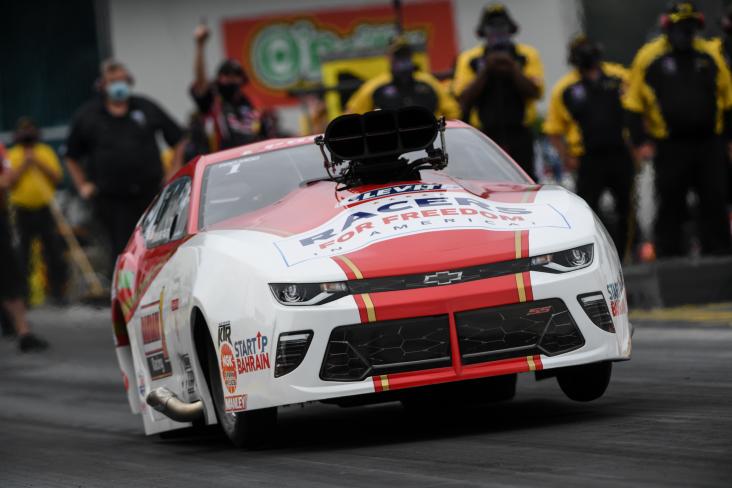 The Bahrain 1 Pro Mod team planned to assault the Gators with four Pro Mod cars (each car with a different power adder) because as Jackson tells it, “we had no idea what was going to happen with parity.” But with the crash, and no time to fix his Roots-blown car, Jackson’s backup plan was to drive Jeffrey Barker’s nitrous car. But then COVID-19 hit and Jackson’s race effort went from wide-open to full-stop quick enough to peg his personal G meter. “[COVID-19] really changed how we’d race in 2020,” said Jackson. “You didn’t see a whole lot of those moonshot runs like what we had in 2019. A lot of that was just our inability to tear the thing up. If you go out there and you blow it up in Q1, and you’ve only got two rounds to qualify, you’re behind the eight ball.