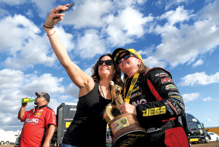 Heading into the Dodge NHRA Finals in Las Vegas, Enders held the lead, but a fourth championship was far from a given because her teammate Coughlin and Line were in the hunt. The bitter fight to the finish that many had expected never materialized. In a truly shocking development, Coughlin dropped his round-one match against rising star Aaron Stanfield. Line also sustained a rare early loss when he fell victim to Cristian Cuadra’s nearly perfect .002 light. Enders watched in disbelief as the events unfolded in front of her.