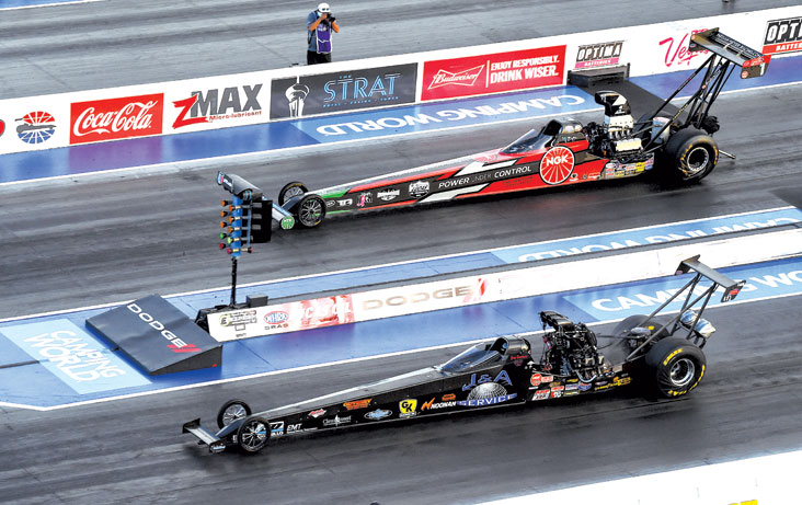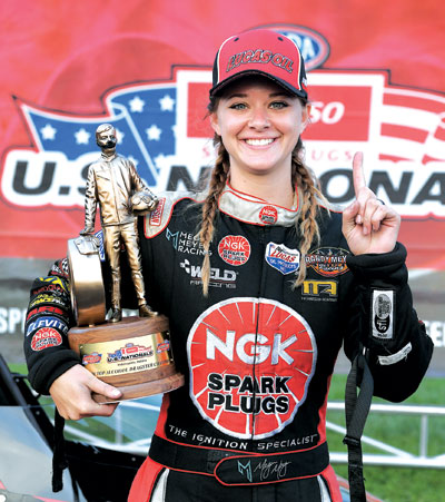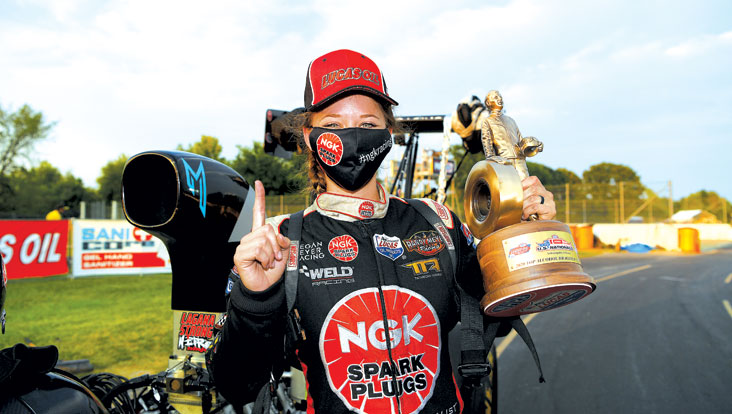 “As soon as my win light came on, I pulled the parachutes and started crying,” she said. ”The [top-end official] told me, ‘OK, go over to the stage and Glen [Cromwell, NHRA president] will hand you your Wally,’ and I said, ‘I already have the Wally,’ and I was like, ‘Wait, what are you talking about?’ And he said, ‘He’s going to shake your hand and give you the other trophy,’ and I was like, ‘Wait. You mean we won both?’ It was incredible.”