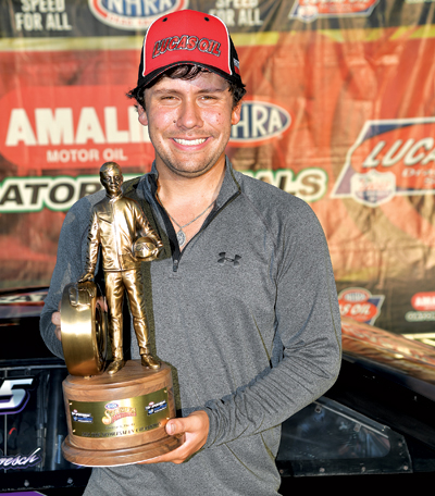 “I love where I am right now,” he said. “I’ve been fortunate to achieve my dream of racing in these two classes at such a young age. I get to race with my parents. My mom brings me into the beams, and my dad tunes the car. We have our own little thing, and I’m perfectly happy with it. I also have to thank Jerry Haas and John DeFlorian for building such a great car, Jim Hooker for the paint, Bill Doucet, our engine guy, Marco Abruzzi for the transmission, and Chuck Ford for the blower.”