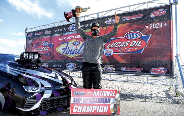 Bracket racing what is essentially a Pro Mod car might be the ultimate test of man and machine, and Darian Boesch passed with flying colors in 2020, winning the world championship in the Top Sportsman presented by Vortech Superchargers class. Boesch’s Jerry Haas-built Camaro regularly runs in the 6.2s at 230 mph, and he’s typically at or near the top of the qualifying chart. He also tends to hang around a while on Sundays because of his ability to cut a light and accurately judge his opponents at the finish line.