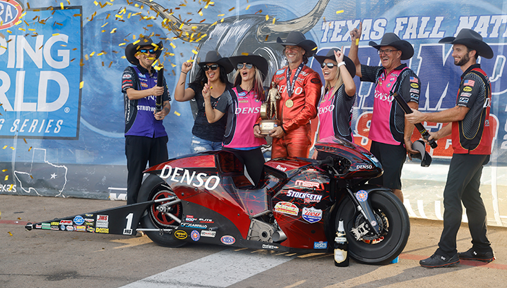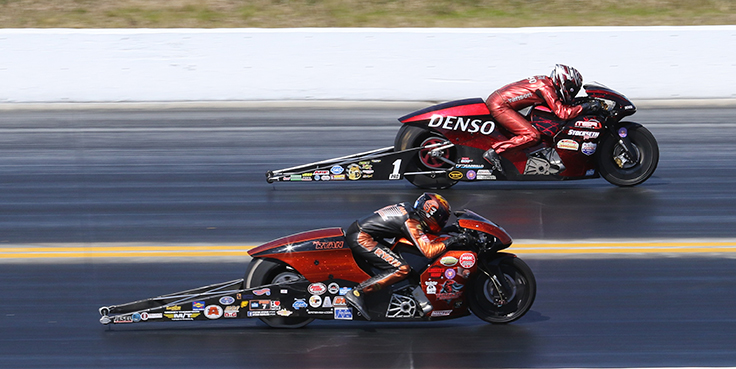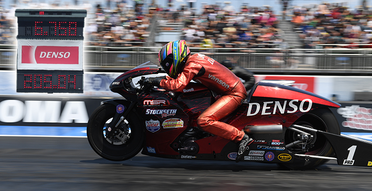 “We knew we could run that fast, we just needed to get the gear ratios right,” Smith said. “At the four-wide in Charlotte, I was on the rev-limiter for the last couple-hundred feet and still ran 202. I was just afraid to make a change because the bike was running so well. I went for the win rather than the speed, but I knew we had it in us.”
