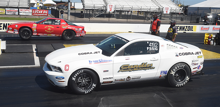 “This car is like a part of our family,” Stanfield said. “I’m not sure how to figure its winning percentage, but it’s pretty high. We bought it back, and [Super Stock racer] Jeff Dona restored it. Technically, it’s Aaron’s car, but he lets me drive it. They make fun of me when I get in it. They play the old ‘Reunited’ song.”