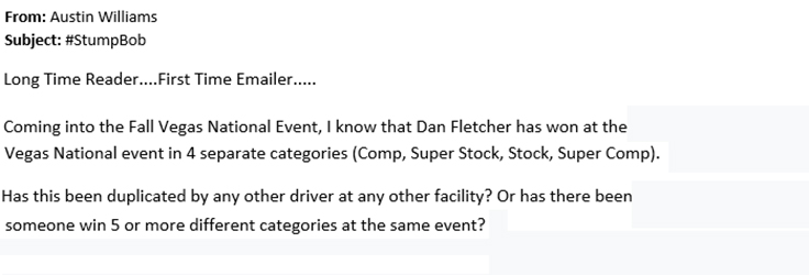 #StumpBob: Has any Sportsman racer won in five classes at the same event?