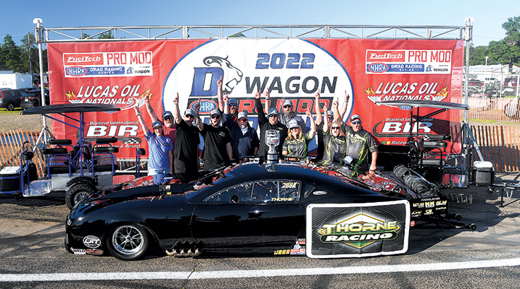 Two weeks later, Thorne won the inaugural D-Wagon NHRA Pro Mod Shootout held on Saturday of the Lucas Oil NHRA Nationals in Brainerd, where he also qualified No. 1 for the second time in 2022.
