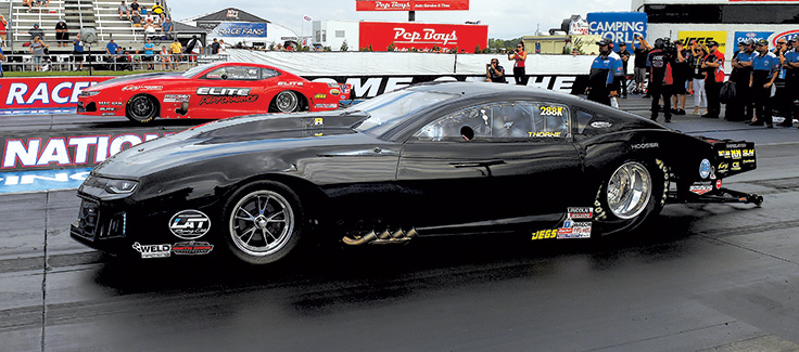 Thorne thanked his parents, Karl and Michelle, who own the team, wife Trisha, tuner Jamie Miller, his son, Johnny, and Craig Pettis, and he acknowledged the support of ProLine Racing, M&M Transmissions, Smith Brothers Pushrods, ProCharger, Carmack Engineering, LAT Racing Oils. Outlaw Racing Fuels, NGK Spark Plugs, Boggs Gasses, and the family business, Thorne Site Development.