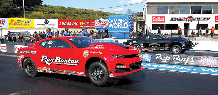 Barton bagged the first of his three wins at midseason when he defeated Stephen Bell in the final in Bristol. Barton qualified his Saw Mill Auto Sales COPO Camaro in the No. 10 spot at that event and then powered past Leonard Lottig, Stanfield, and Dave Davies before winning the final by a comfortable 7.88 to 7.93 margin.