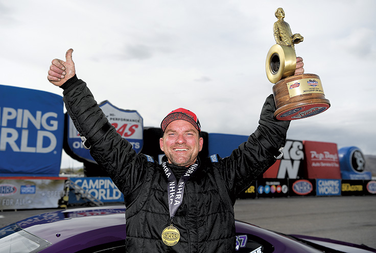 Considering the degree of difficulty in racing such a fast car, it probably isn’t surprising that Priddy struggled out of the gate, winning just a single round in his first two national events in Pomona and Phoenix and his first divisional event at Wild Horse Pass Motorsports Park. Things changed dramatically in April when he nearly ran the table in Las Vegas with a win at the NHRA Four-Wide Nationals followed by a win and a semifinal at the Division 7 Lucas Oil Series doubleheader. At that point, Priddy felt that even if he wasn’t the favorite, he was certainly a contender for the title.