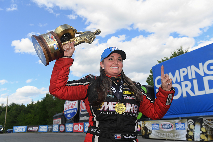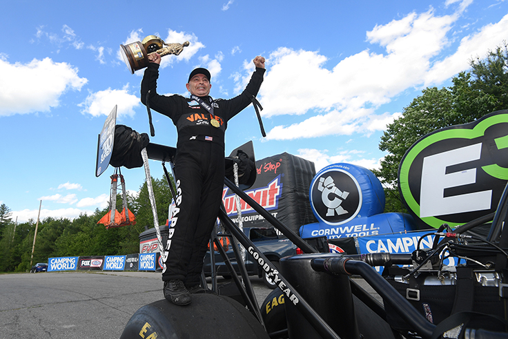 If his wins in Phoenix and Charlotte weren’t convincing enough, Mike Salinas cemented his status as a legitimate championship contender by grabbing his third victory of the season in Epping. Salinas came into Epping as the third-ranked driver in Top Fuel and left just 30 points behind leader Brittany Force after beating Justin Ashley in the final round. Salinas admittedly had a bit of luck on race day, but the Scrappers team was there when it counted most, including a 3.729 in the final round that Ashley could not match. As an added bonus, Salinas got to celebrate along with his daughter, Jasmine, who won the Top Alcohol Dragster title at the NHRA Lucas Oil Drag Racing Series Central Region event held at Summit Motorsports Park in Norwalk.