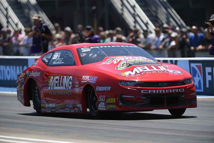 Erica Enders was about two gear changes away from her fifth win in seven events this season but the engine in her Melling/Elite Camaro had other ideas. The final should have been over when Aaron Stanfield shook the tires, but after Enders’ car started spewing volumes of white smoke, Stanfield was quick to get back on the gas and drove in one of the craziest Pro Stock finals we’ve seen in a while.