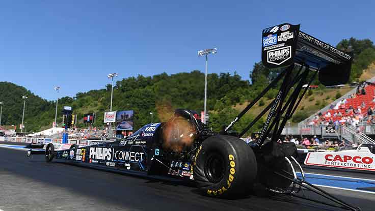 Justin Ashley won the season-opener in Pomona back in February and he scored again in Bristol, which are two completely different venues. Ashley’s Phillips Connect dragster can run 3.6s when conditions allow and his reaction times have been largely consistent. The team also doesn’t abort many runs which helps explain why they’re just 52 points out of first place.