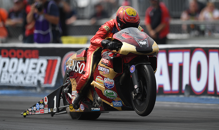 That made him — once again — the man to beat in the postseason, and after an early slipup in Reading, losing in the second round, Smith went to work. He qualified first and won in St. Louis and added another No. 1 qualifier and runner-up appearance in Las Vegas, taking control while his rivals fell early down the stretch. The sixth title became reality with his first-round win in Pomona as Smith continued to reign supreme in Pro Stock Motorcycle.