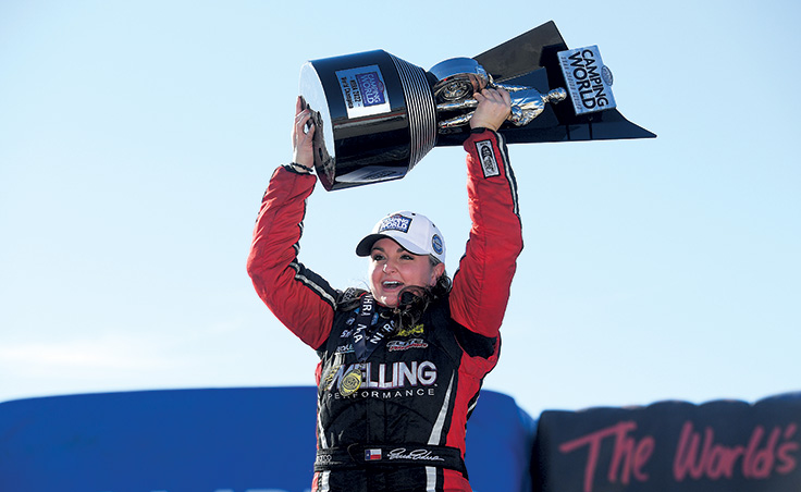 There were additional highlights and just a couple of low lights during the regular season. Enders won the sport’s first all-female Pro Stock final when she defeated rookie Camrie Caruso in the Houston final. That was also the final NHRA national event at Houston Raceway Park, the home track where she began her career in the NHRA Summit Racing Jr. Drag Racing League.