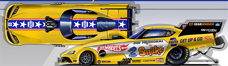 The Hot Wheels/NAPA GR Supra will be a modern version of the Hot Wheels Funny Car Prudhomme drove to victory at the 1973 NHRA U.S. Nationals. Prudhomme was already an established name in the sport with five wins in Top Fuel, but his Funny Car win in Indy helped take his career to new levels. He became the first driver in drag racing history to win a national event in two Pro categories, adding the U.S. Nationals Funny Car win to his three Indy titles in Top Fuel. He went on to win four straight NHRA Funny Car world championships (1975-78) and 49 combined wins in Top Fuel and Funny Car. As a team owner, Prudhomme added more than 50 additional wins in both nitro classes.