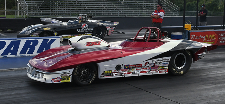 Mother Nature’s timing lined up an interesting scenario, and an unexpected plan was hatched at the last minute. The roadster, which Hess had driven at the St. Louis doubleheader, would be transported by fellow racers George Meyer and Bruce Johnson to Texas Motorplex for the national event, and Larson would fly in and race, lessening time away from the farm.