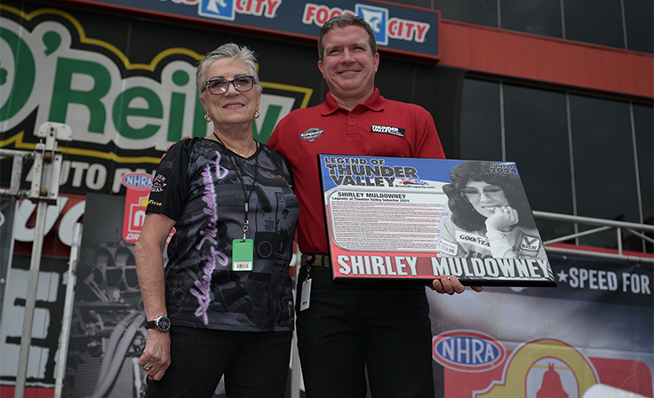 Drag racing pioneer and trailblazer Shirley Muldowney joined a prestigious group when she was officially inducted as the 21st member of the Legends of Thunder Valley. Muldowney's name joins an elite group of racers on the permanent signage high above the Bristol Dragway grandstands in a glorious display, and on Sunday morning, she was emotional as she accepted the honor in front of a crowd of lifelong fans. The names of past Legends of Thunder Valley inductees are overwhelmingly appropriate. Muldowney joins both Don and Tony Schumacher, Don Prudhomme, Warren Johnson, and a slate of other historic figures whose impact has been felt, specifically, in Bristol.