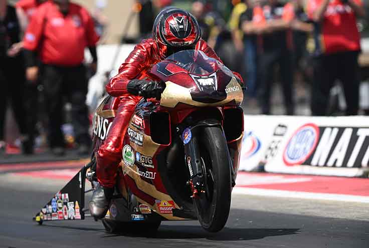 “I’m really excited. I have a good bike. We’ve been testing a lot and getting better and better,” Smith said. “Honestly, I don’t know if lane choice means anything. Both sides are really good. This place has always been good to me. I normally come up here and run really well. This track will take everything you can throw at it. I think we’re back to where we think we should be. A win would be huge. We had the best bike for three runs this weekend and I think we’ll have the best bike tomorrow.”