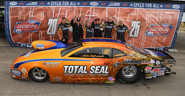 He has been racing for decades, but John DeFlorian’s 2025 campaign in Johnson’s Horsepowered Garage NHRA Mountain Motor Pro Stock was all-time for the St. Louis racer. After finishing No. 3 in the series last season, the driver of the Total Seal Piston Rings Chevrolet Camaro was met with a pair of disappointing races to start the new year. With the help of friends, his destiny soon began to shine with brilliant clarity, and DeFlorian made remarkable strides in great succession, ultimately inking four wins on the way to his first NHRA world championship.