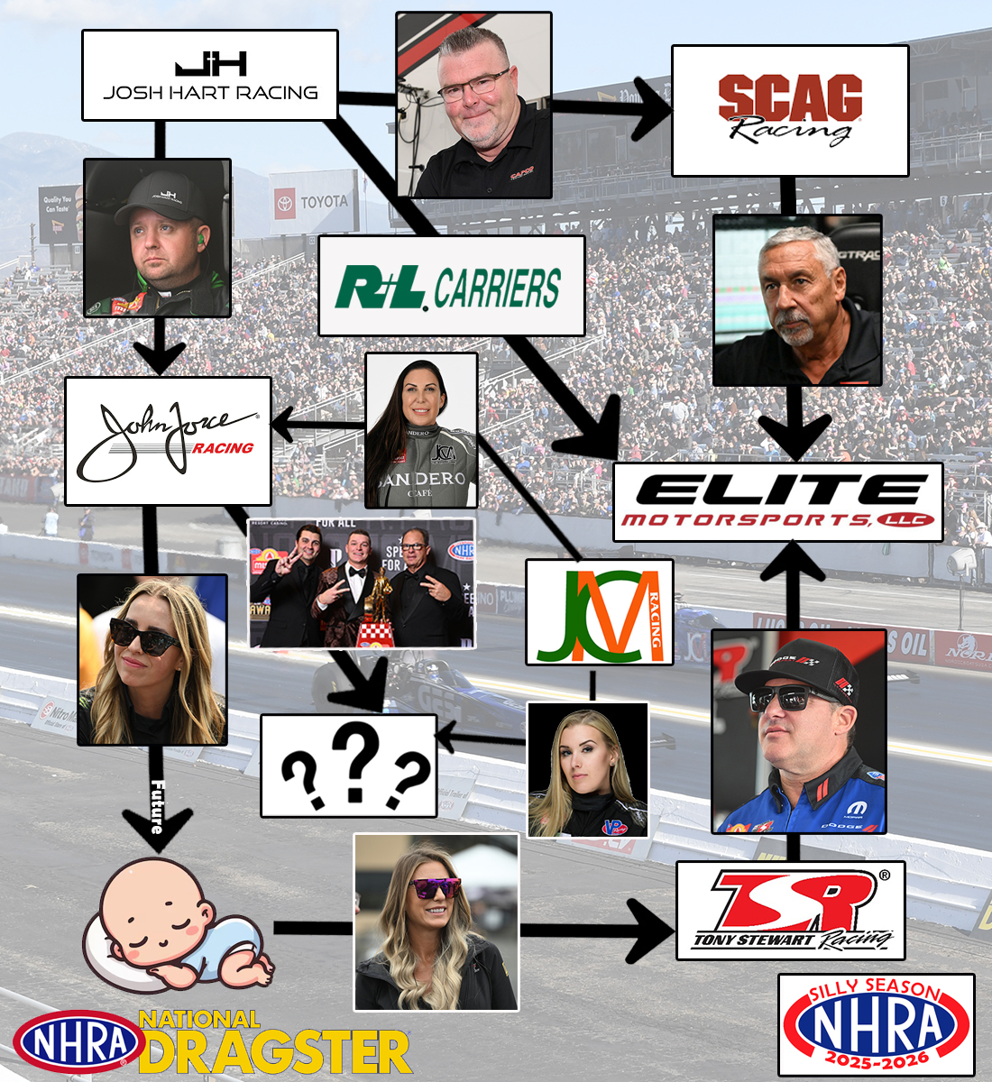 Dec. 3: Cruz Pedregon Racing announced that crew chief Jason Bunker has left the team [story]. External speculation is that Bunker was heading to JFR. Five days later. Pedregon announced that “Rip” Reynolds and Chris "Warrior" Kullberg would tune his car in 2026 [story].